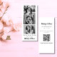 Este cartão moderno e minimalista de Save the date para casamento apresenta imagens e layout no estilo Photo Booth. Ele brinca com a simplicidade de um design de tipografia preto e branco, adicionando um toque único. Espaço para um código QR está incluído. É a escolha perfeita para casais que apreciam elegância limpa e moderna em um design divertido e alegre. Para qualquer necessidade especial de design, sinta-se à vontade para entrar em contato com o designer diretamente, enviando um e-mail para choosehappystudio@yahoo.com