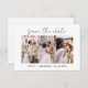 Código QR - Paisagem Horizontal Moderna e Elegante Três (3) Foto Salvar o Magnete de Casamento de Data com tipografia de script com letra de mão. O ímã para salvar o convite de data inclui tipografia de script e chic e design simples para a qual você pode adicionar sua fotografia personalizada de noivado.
