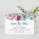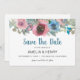 Reserve A Data Código QR simples Casamento Floral Azul e Rosa