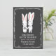Coelhos brancos adoráveis com orelhas rosa compridas noiva e noivo de mãos dadas. Um divertido anúncio de save the date para o futuro Sr. e Sra. Personalize este convite de casamento original com o nome do casal feliz e a data do casamento. Escolha entre uma variedade de tipos de papel. Visite o Jenn's Doodle World para ainda mais produtos de planejamento de casamento com este design de coelhinhos e mais convites de tema de casamento com animais fofos.