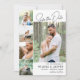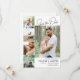 Modelo de cartão de foto minimalista para salvar a data do casamento com quatro fotos menores e uma foto maior do casal feliz com fontes pretas em um fundo branco. Cartão de salvar a data com foto de um lado em um design limpo e moderno com cinco fotos em um layout simples para mostrar suas fotos favoritas de salvar a data ou fotos da sessão de fotos do noivado. Peça aos seus futuros convidados para salvar a data do seu casamento com este cartão de salvar a data simples e moderno com espaço para cinco fotos.