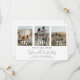 A design apresenta uma colagem de casais com um romeno moderno de escrita caligráfica e iniciais monográficas na parte de trás da carta. Personalize facilmente seus dados importantes para torná-los seus. Paira bem com qualquer tema moderno de casamento.
