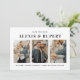 Anunciar a data do casamento com este cartão de aviso de data personalizável. Ele apresenta uma simples tipografia com um padrão floral de trás. personalize este cartão floral, salve o cartão de data adicionando nomes e outros detalhes do casamento. Esta moderna colagem fotográfica, salvar o cartão de data é perfeito para qualquer tema de casamento ou estação.