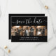 Cartões salve a data de colagem personalizados de fotos de casamento preto e branco, com 4 imagens e uma fonte moderna de roteiro. Personalize facilmente este casamento com fotos de na moda, salve a data com suas imagens e detalhes do casamento, incluindo um site de casamento. Itens correspondentes disponíveis. Solicitações personalizadas bem-vindas.
