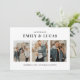 Tipografia Preta Três Colagem Fotográfica Salvar A Placa Date | Anuncie a data do seu casamento com este moderno, salve a data em que o cartão foi entregue. Apresenta uma tipografia simples e três colagens fotográficas. Esta foto para salvar a data é uma maneira perfeita de mostrar suas fotos de noivado favoritas. Perfeito para qualquer tema de casamento.