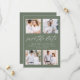 Anuncie seus próximos nupciais em estilo com nossa foto do Elegant Script para salvar o cartão de data. Os cartões salve a data elegantes exibem 4 de suas fotos de noivado favoritas enquadradas em sábio escuro com "salve a data" em um roteiro branco e moderno de caligrafia. Personalize o cartão adicionando seus nomes, data do casamento e local do casamento. O minimalista salve a placa de data reverte para um fundo verde de sábio escuro sólido ou para uma cor de sua escolha.