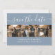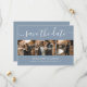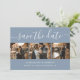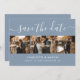 Cartões salve a data de colagem de fotos de casamento azuis e poeirentos personalizados com 4 imagens e uma fonte moderna de roteiro. Personalize facilmente este casamento com fotos de na moda, salve a data com suas imagens e detalhes do casamento, incluindo um site de casamento. Itens correspondentes disponíveis.