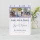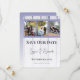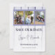 Anuncie a data do seu casamento para amigos e familiares com este simples e elegante Colagem de Fotos de Madeira Lavanda para Salvar a Data. O design do anúncio apresenta um fundo de madeira e espaços para três fotos do casal feliz, completo com um design de texto moderno.