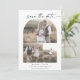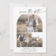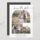 Esta moderna colagem de fotos do arco de bô, salvar o cartão de data é perfeito para um casamento simples. O boêmico design preto e branco apresenta uma tipografia industrial única, com estilo de safra minimalista. Personalize a frente do cartão com 3 fotos, seus nomes, data e local do casamento.
