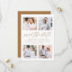 Anuncie seus próximos nupciais em estilo com nossa foto do Elegant Script para salvar o cartão de data. Os cartões salve a data elegantes exibem 4 de suas fotos de noivado favoritas, enquadradas em branco com "salve a data" em um roteiro de caligrafia moderno e dourado. Personalize o cartão adicionando seus nomes, data do casamento e local do casamento. O minimalista salve a placa de data reverte para um fundo ouro sólido ou uma cor de sua escolha.
