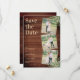 Reserve a Data! Anuncie o seu casamento a amigos e familiares com esta madeira rústica com folhas de eucalipto, cartões salve a data modernos de colagem de fotos. Personalize com 3 de suas fotos de noivado favoritas e personalize com nomes, data de casamento, local e site. Adicione qualquer outra informação na parte de trás. Este casamento botânico único, guardando as cartas, vai causar uma impressão duradoura, seus convidados vão salvar a data! COPYRIGHT © 2020 Judy Burrows, Black Dog Art - Todos Os Direitos Reservados. Colagem de Fotos Eucalyptus em Madeiras Rústicas Salva a Data