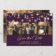 Elegante personalizado cartões salve a data de fotos de casamentos roxos e dourados com uma fonte moderna de escrita. Nosso casamento salva a data mostra uma coleção de fotos de 4 imagens contra um fundo roxo adornado com luzes de cordas. Personalize facilmente este roxo e ouro e salve o cartão de data com suas imagens e detalhes de casamento, incluindo um site de casamento, se desejar. Para pedidos personalizados, envie-nos uma mensagem.
