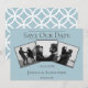 Anuncie a data do seu casamento para amigos e familiares com este moderno Save the Date de Colagem de 3 Fotos. O design do anúncio apresenta três espaços para fotos do casal feliz, design de texto limpo e um padrão de diamante elegante no verso.