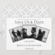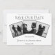Anuncie a data do seu casamento para amigos e familiares com este moderno Save the Date de Colagem de 3 Fotos. O design do anúncio apresenta três espaços para fotos do casal feliz, design de texto limpo e um padrão de diamante elegante na parte de trás.