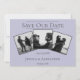 Anuncie a data do seu casamento para amigos e familiares com este moderno Save the Date de Colagem Simples de 3 Fotos. O design do anúncio apresenta três espaços para fotos do casal feliz, design de texto limpo e um padrão de diamante elegante no verso.