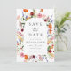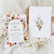 Share your wedding date in style with this Colorful Watercolor Wildflowers wedding save the date, featuring a graceful floral arrangement that forms an elegant arch frame around your names, wedding date, and location. A vibrant mix of watercolor wildflowers in shades of pink, orange, burgundy, purple, red, and yellow accented with soft greenery creates a romantic botanical focal point. Classic serif lettering is complemented by a refined calligraphy accent, adding a timeless and sophisticated touch. The back of the card features a coordinating wildflower bouquet, creating a cohesive design that coordinates beautifully with matching wildflower wedding invitations and stationery. Ideal for garden weddings, outdoor ceremonies, and floral wedding themes, this save the date offers a beautiful introduction to your special day.