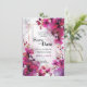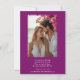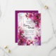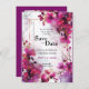 O cartão Save the Date, parte do "Enchantment Fuchsia: Watercolor Wedding Suite", é uma ode visual ao romance e ao esplendor botânico. Na frente, uma imagem cônica cativante forma um pano de fundo exuberante, com tons ricos de burgundy e fuchsia roxa entrelaçando. Os nomes dos casais, a data significativa e a localização de sua celebração emergem com elegância eterno, criando uma introdução encantadora ao seu dia especial. Voltando ao fundo, um fundo roxo comum proporciona uma canvas refinada. Centrado nesse pano de fundo está uma querida foto do casal, capturando um momento de amor e conexão. Abaixo da foto, uma área de texto personalizável aguarda, permitindo que o casal compartilhe uma mensagem ou detalhes pessoais. Uma linha adicional é dedicada ao endereço do site do casamento ou pode ser omitida para simplificar. Este design cuidadoso garante que o cartão Salvar a Data se torna uma mistura harmoniosa de atração artística e conexão pessoal, convidando os entes queridos a testemunhar e celebrar a história do amor que se desenrola dentro do "Encantamento Fuchsia: Watercolor Wedding Suite."