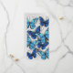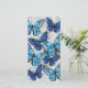 Composição vertical de borboletas morpho azuis e brancas realistas em fundo cinza texturizado. Borboleta azul Morpho.