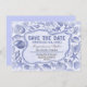 Lindos cartões de salvar a data inspirados em vintage azul para casamentos de praia tropicais. Vários tipos de conchas e texto antigo dentro de uma moldura de corda náutica, tudo completado na textura de papel antigo ao fundo. Por favor, entre em contato se precisar de ajuda com personalização ou tiver um pedido de cor personalizada.