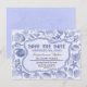 Lindos cartões vintage inspirados em azul para salvar a data de casamentos na praia tropical. Vários enfeites de conchas e texto antigo dentro de uma moldura de corda náutica, tudo completado com textura de papel antigo ao fundo. Por favor, entre em contato comigo se precisar de ajuda com personalização ou tiver um pedido de cor personalizada.