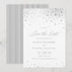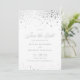 Adicione um toque de luxo e brilho ao seu anúncio de casamento com este deslumbrante Cartão de Save the Date com Confetes em Folha de Prata Falsa. Com um lindo design de confetes com elegantes detalhes em folha de prata falsa. A delicada e fluída escrita complementa perfeitamente os detalhes cintilantes, criando um anúncio de casamento atemporal.