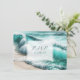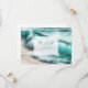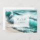 Cartões de confirmação de casamento personalizados com tema costeiro. Lindas ondas do oceano turquesa caindo em uma praia arenosa. Fonte elegante.