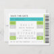 Personalize este ingresso divertido e anuncie sua data de casamento de uma forma ousada e exclusiva! Tom de Kelly Green e Aqua Blue com sotaques de preto. Uma mistura de fontes digitais para um verdadeiro toque de concerto.