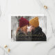 The full-sized image of the couple radiates love and anticipation, conveying the warmth and joy of uniting in matrimony during this festive season. This wedding save the date card is a perfect way to share the excitement of your engagement with friends and family.