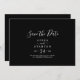 Este mínimo de coordenadas negras horizontais, salvo o cartão de data é perfeito para um casamento moderno. O sofisticado design boho elegante apresenta preto escuro sólido com um toque boêmico moderno. Coordena-se com a Coleção de Sangue Roxo Moody por Paperie Fresca e Iummy.