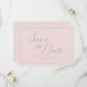 Elegante salvar o cartão de data apresenta a tipografia moderna "Salvar a data" definida em um fundo rosa bonito.