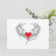 Coração vermelho pintado artificialmente com cinza de asas de anjo, decorado com contorno liso preto.
