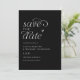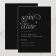 Cartão de Salvar a Data (Preto com Texto Branco): Este cartão de salvar a data de casamento moderno e elegante apresenta um fundo preto elegante com texto branco simples e um coração desenhado à mão charmoso. Seu design minimalista exala sofisticação, tornando-o a maneira perfeita de anunciar seu dia especial com estilo e graça. Ideal para casais que buscam um toque refinado e atemporal para a papelaria de seu casamento.
