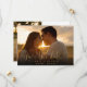Este cartão de save the date de coração dourado elegante apresenta sua foto e uma data de save the date em script acima de seus nomes, data e local. O verso apresenta uma foto adicional, mensagem e código QR do site de casamento. Criado por Thisisnotme©