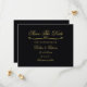 Salve a data com este elegante coração de ouro florescente e cartão preto. Personalize com seus próprios detalhes. Parte da nossa legante suíte de convite de casamento Black & Dourado Heart Flourish projetada pela artista Susan Coffey.