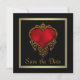Preto e dourado com elegante adorno vermelho rico dourado coração casamento salvar a data anúncio.
