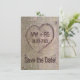 Mostre seu senso de estilo e eco-chic com este legal coração falso esculpido em uma árvore, exceto o design de anúncio de data. Salve árvores reais usando essa imagem de um coração raspado ou gravado na madeira macia de uma árvore de floresta. Excelente de um casamento, noivado ou evento especial ecologicamente, natureza ou floresta temida. Você ama a floresta, as árvores e a terra, assim como a sua amada? Copyright © www.CustomInvitesOnline.com
