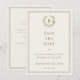 Um fundo suave de cor marfim, moldura e coroa de verde menta desbotado. Personalize e adicione o seu monograma inicial, nome e os detalhes.