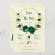 elegante e romântico flores verdes esmeraldas e folhas de ouro na coroa dourada salvo o convite da data Os detalhes da brilha são simulados