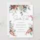 Apresentando este cartão Save the Date (Salvar a data), com o charme radiante da coloração da água Holly com bagas vermelhas e brancas enfeitando graciosamente um fundo branco nítido. Este anúncio foi projetado para capturar a essência do seu dia especial com sua elegância casual e seus motivações sazonais vibrantes.
