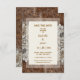 Romântica, Rustic Western Country, Couro e Lace. Mostre seu estilo romântico de país com este convite maravilhosamente desenhado, com um visual marrom estilo ocidental rico e sotaque delicado do local de colheita. O encanto rústico do couro falso combina-se sem esforço com a elegância eterno do lugar para uma aparência que é verdadeiramente única. Fácil de personalizar com todas as suas informações de salvamento de data.