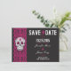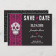 Rico rosa rendas do açúcar mexicano Dia do Casamento Morto Salve o convite para o anúncio. Este dia do crânio de açúcar dos anúncios de casamento mortos é uma excelente para qualquer casamento ou evento especial, noiva desgraçada ou dia do casamento do tema do crânio morto! Preto e rosa são mostrados - envie um e-mail para modificações de cor personalizadas: articulosdepapel@gmail.com ou através do Zazzle. As placas de coordenação estão sempre disponíveis!