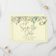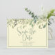 Moderno Salvar os anúncios de data apresentam a aquarela cor-de-água eucalipto deixa borda no plano de fundo do creme com blocos de texto verdes personalizáveis nas fontes modernas