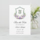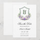 Este lindo cartão de Save the Date de casamento com crista floral branca roxa com as iniciais dos noivos seria perfeito para o seu casamento. A sua redação é tradicional, mas moderna e as fontes são requintadas. As rosas roxas e brancas em aquarela, peônias e lírios do vale e folhagens tênues são deslumbrantes juntas.