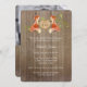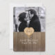 COLOR PALETTE: COLEÇÃO vermelha, bronca, marrom e verde de DESIGN: Uma Foto Salva o Anúncio de Data ou Convide para anunciar seu noivado para amigos e família e deixá-los saber a data do seu futuro casamento. Sua fotografia é facilmente alterada usando o campo de modelo fornecido. Este design moderno da floresta foi criado da trabalho de arte de cor d'água original pintada por Audrey Jeanne Roberts e então desenhada graficamente neste jogo de convite de casamento correspondente. Um par de belas raposas sentam-se em ambos os lados de um buraco de madeira esculpido em forma de coração com a noiva e as iniciais do noivo como um monograma no meio. O fundo é uma cerca rústica de madeira de campo. O mesmo coração se repete no reverso com seus monogramas. Design simples e contemporâneo que é perfeito para um casamento informal ou ao ar livre que tem natureza ou tema natural.