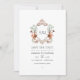 Convite de casamento em aquarela com uma crista caprichosa de tema florestal personalizável com as iniciais da pessoa celebrada.