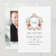 Convite de casamento em aquarela com uma crista caprichosa de tema florestal personalizável com as iniciais da pessoa celebrada.