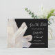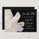 O clássico White Crystals on Black Wedding Save the Date Announement Card define o tom para a cerimônia e recepção do seu casamento. Esta elegante e costureira nupcial conserva o anúncio da data apresenta uma fotografia de um geode mineral druz de quartzo branco com fundo negro. O quartzo claro também é conhecido como o "curandeiro-mestre" e "pedra do poder" e é dito que aumenta qualquer energia ou intenção e faz um aprimoramento ou adição únicos à sua decoração ou tema de casamento.