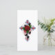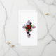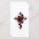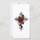 Cruzamento prateado com rosa vermelha e folhas pretas sobre fundo branco.