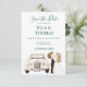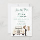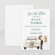 This elegant save-the-date wedding invitation features a timeless design centered around a beautifully illustrated antique wedding car, evoking a sense of vintage romance and charm. Beside it, a bride and groom share a tender kiss, capturing the joy and intimacy of the special moment. The text is presented in a rich Emerald Green hue, adding warmth and sophistication while standing out gracefully against the background. Thoughtfully designed to be fully customisable, every detail—from names and dates to key information—can be tailored to reflect your unique celebration.