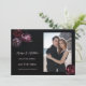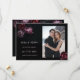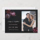 This Save the date card features 3D purple and red peony flowers on a black background.